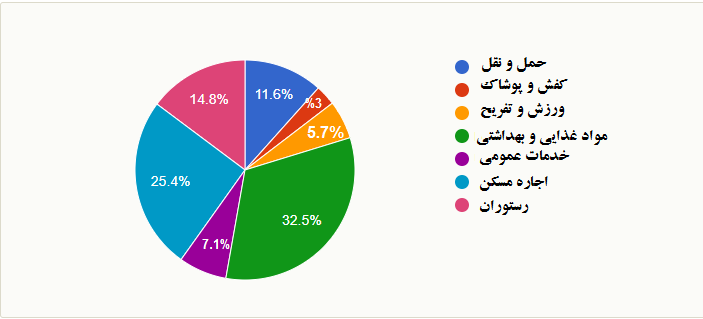 نمودار دایرهای زیر، توزیع هزینههای ماهانه زندگی در اتریش را نشان میدهد.